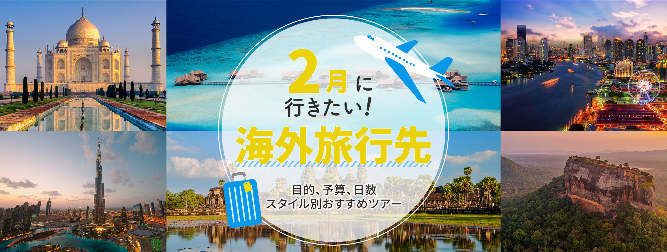 2月は、乾季で天候が安定しやすいエリアが多く、海外旅行に人気の時期です。ビーチリゾートでゆっくり過ごす旅から、遺跡や街歩きを楽しむ観光まで、幅広い目的に合わせて行き先を選びやすい季節です。