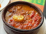 (トマトスープなどで味付けされたチキン/ビーフ/魚)