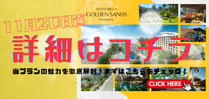 ┃11月20日迄期間限定*今だけ最大50%OFF┃<海×世界遺産ジョージタウン×美食の街ペナン島へ!>エグゼクティブシービューへ無料アップグレード!4つ星シャングリラ・ゴールデンサンズ泊 3泊6日間