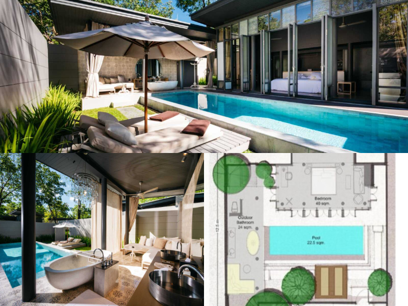 79室のヴィラはすべてプライベートプール付きで、広々とした空間と洗練されたスタイリッシュなデザインが特徴です。