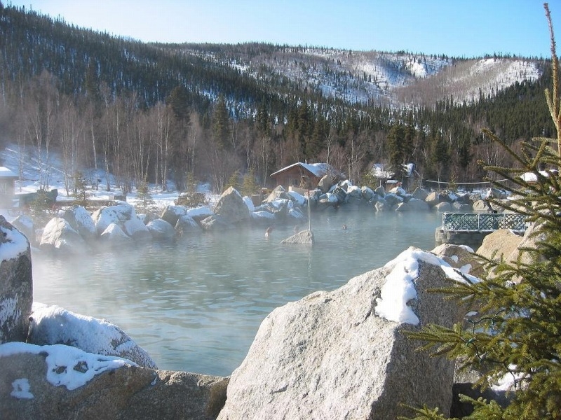 ・露天風呂は、北米では非常に珍しい源泉掛け流しとなってます。運が良ければ温泉に浸かりながらオーロラ鑑賞することができます。